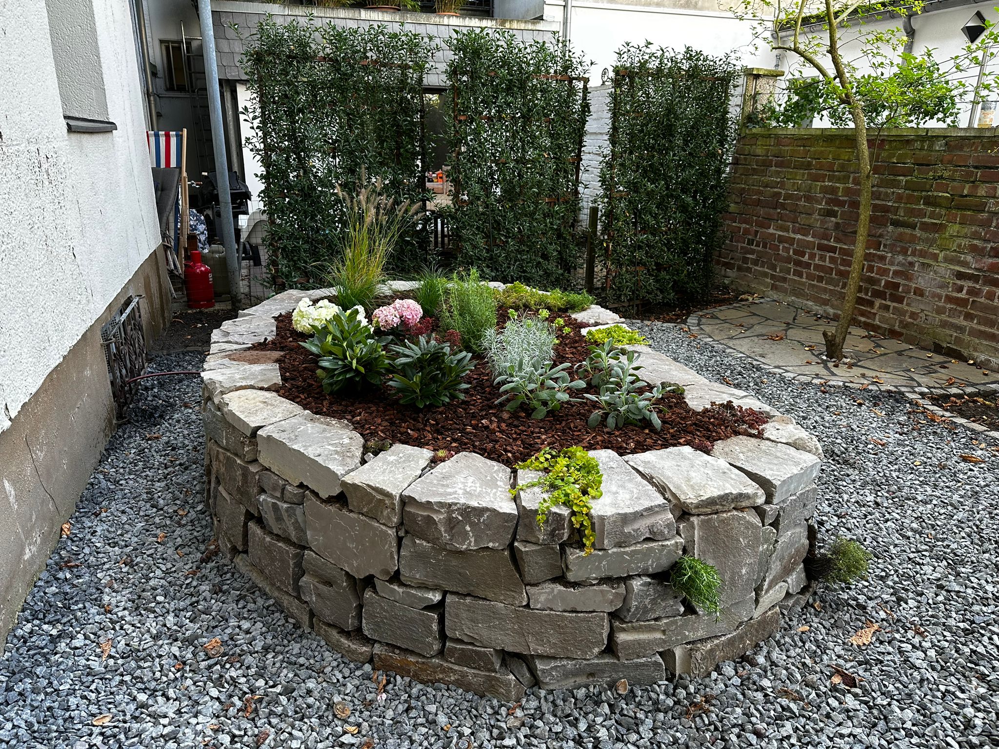 Für den Bau einer Trockenmauer ist sehr viel Erfahrung und handwerkliches Geschick erforderlich, damit die Mauer dauerhaft sicher steht. Diese Arbeit gehört daher vor allem bei Grundstücken, auf denen sich Kinder aufhalten oder bei einem Standort in der Nähe eines öffentlichen Weges in die Hände eines Fachmanns. Unsere Trockenmauern halten auch starken Beanspruchungen stand und stehen daher jederzeit sicher. Rufen Sie uns an, wenn Sie sich eine Trockenmauer für Ihren Garten wünschen. Rund um Köln und Hürth haben wir meist schon am nächsten Tag Zeit für einen Termin vor Ort. Wir beraten Sie bei der Auswahl der Steine, übernehmen den Einkauf für Sie und vereinbaren mit Ihnen einen Termin, an dem wir Ihre Trockenmauer aufbauen. Diesen Termin können Sie fest einplanen, denn wir halten unsere Zusagen immer ein.