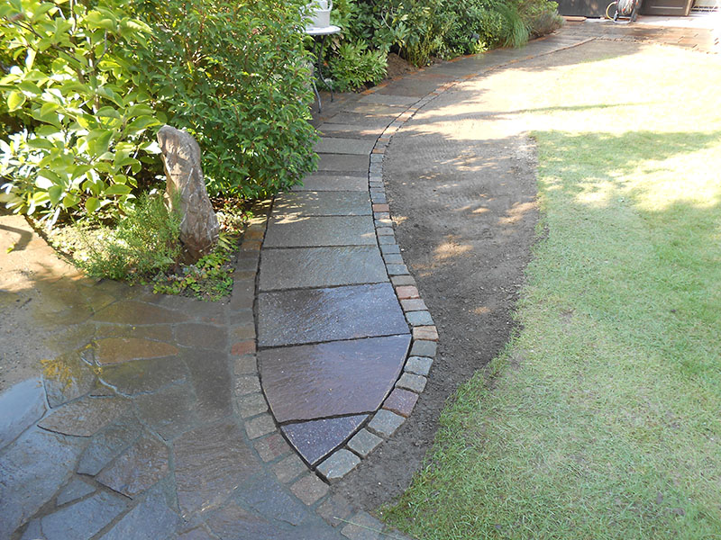 Wir helfen Ihnen gern bei der Anlage von Wegen auf Ihrem Grundstück, damit Sie auch bei schlechtem Wetter alle Gebäude und Bereiche im Garten erreichen, ohne dabei nasse oder schmutzige Füße zu bekommen. Kontaktieren Sie uns, meist haben wir schon am darauf folgenden Tag Zeit, einmal bei Ihnen vorbeizuschauen. Wir stellen Ihnen die verschiedenen Möglichkeiten vor und helfen Ihnen bei der Auswahl der richtigen Steine. Bei unserer Planung berücksichtigen wir Ihre individuellen Wünsche und unterbreiten Ihnen einige Vorschläge. Im Bereich des Wegebaus haben wir bereits viel Erfahrung. Wir sorgen daher für einen stabilen Untergrund, damit die Steine weder zur Seite, noch in der Höhe verrutschen können. So werden Ihre Wege dauerhaft gut aussehen und sicher sein, denn Unebenheiten auf Wegen führen vor allem im Winter schnell zu Stürzen. Zusätzlich verlegen wir ein Unkrautvlies unter den Wegen, wenn Sie dies möchten. So kann kein Unkraut durch die Fugen dringen und der Pflegeaufwand für die Wege reduziert sich drastisch. Es gibt unzählige Möglichkeiten, die Wege praktisch und gleichzeitig schön zu gestalten. Alle Varianten aufzuzählen, würde jedoch den Umfang unserer Internetseite sprengen, deshalb erläutern wir Ihnen diese am liebsten in einem persönlichen Gespräch.