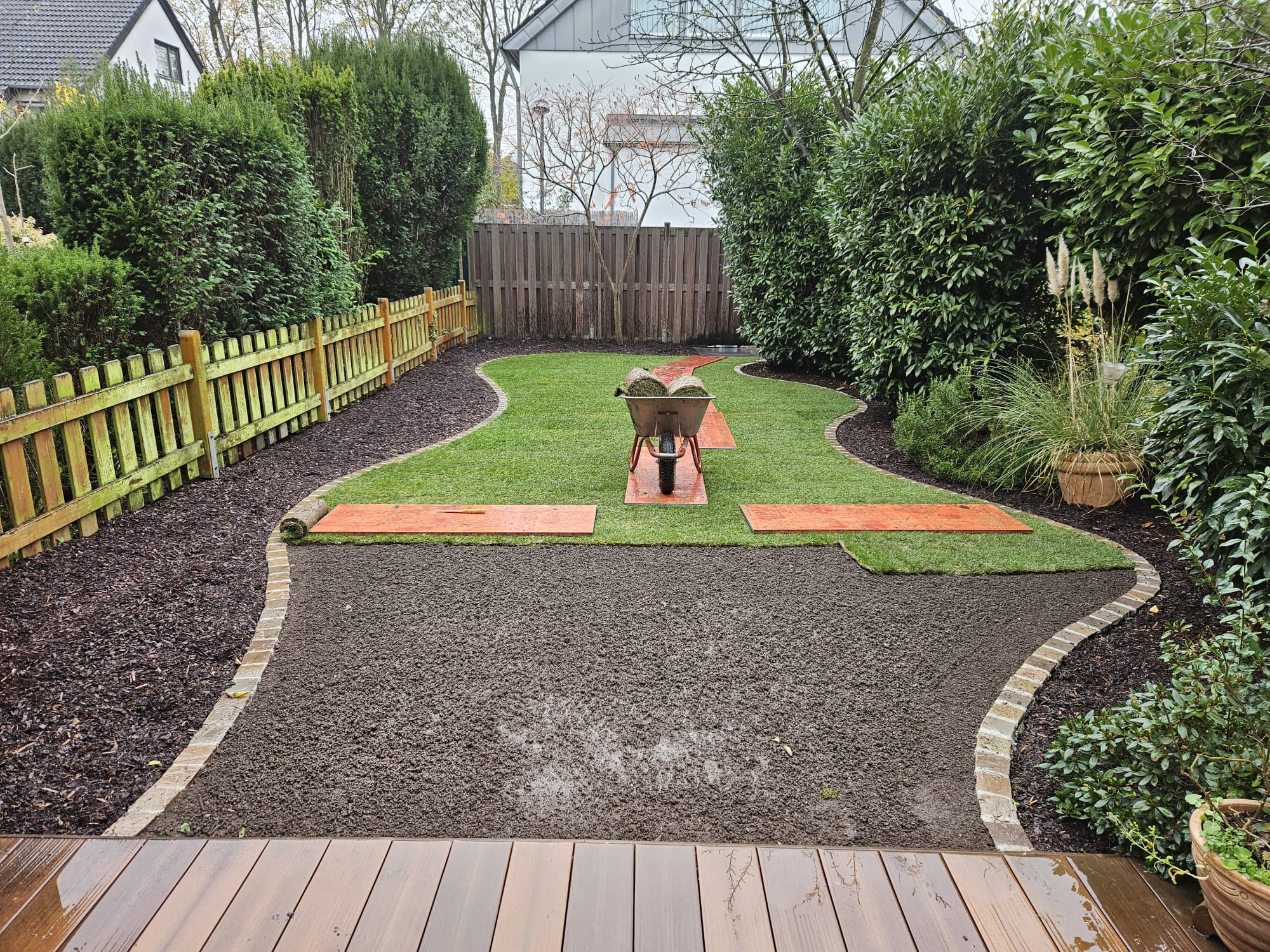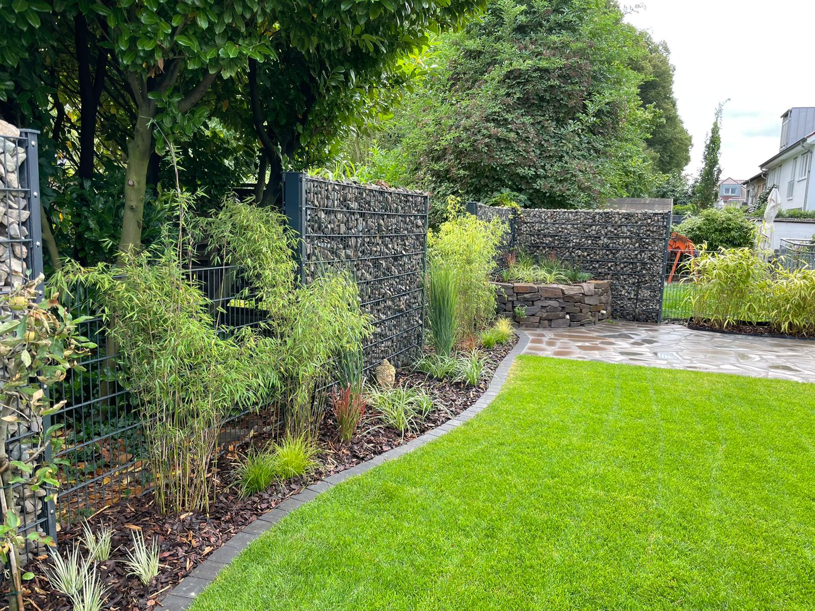 Auf fast allen Grundstücken findet sich eine Grünfläche. Auch die Anlage eines Rasens übernehmen wir daher gern für Sie. Wir säen Rasenflächen aus oder verlegen auf Wunsch einen Rollrasen. Letzterer bildet sofort eine geschlossene Oberfläche und kann daher entsprechend früher betreten und genutzt werden. Bevor wir den Rasen aussäen bzw. verlegen, bereiten wir den Boden jedoch gründlich vor, denn nur mit einem fachgerecht ausgeführten Rasenplanum bleibt die Oberfläche dauerhaft eben und es entstehen keine Senken, in denen sich Regenwasser stauen könnte. Wir entfernen daher alle Fremdstoffe aus dem Boden und verdichten ihn. Wenn Sie möchten, fassen wir Ihren neuen Rasen auch ein. So lässt sich verhindern, dass sich das Gras bis auf die Wege oder in angrenzende Beete ausbreitet. Für die Einfassung eines Rasens eignen sich viele Materialien, über die wir Sie gern in einem persönlichen Gespräch informieren. Außerdem beraten wir Sie bei der Auswahl des Rasens, denn es gibt inzwischen zahlreiche Grasmischungen, die sich für unterschiedliche Böden und Standorte eignen.