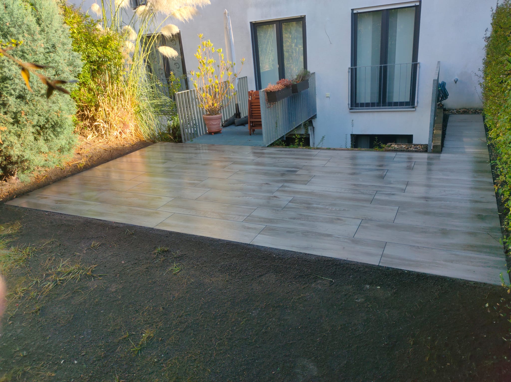 Bei der Fertigstellung Ihrer Terrasse übernehmen wir sowohl die vorbereitenden Arbeiten als auch das Verlegen des Bodenbelags. Wir sorgen dafür, dass der Untergrund tragfähig und eben ist. Nur so ist gewährleistet, dass Ihr neuer Fußboden auch in einigen Jahren noch eben ist und keinerlei Stolperkanten aufweist. Um die notwendigen Materialien brauchen Sie sich ebenfalls nicht zu kümmern, denn wir bringen die gewünschten Feinsteinzeugplatten und alle Baustoffe, die wir zum Verlegen benötigen, mit. Bei uns bekommen Sie alles aus einer Hand. Sie brauchen uns daher nur noch zu sagen, welche Art Terrasse Sie sich wünschen. Wir planen Sie und vereinbaren im Anschluss mit Ihnen einen Termin für die Montage. Auf die Einhaltung dieses Termins können Sie sich verlassen, denn auf Zuverlässigkeit und Pünktlichkeit legen wir größten Wert.