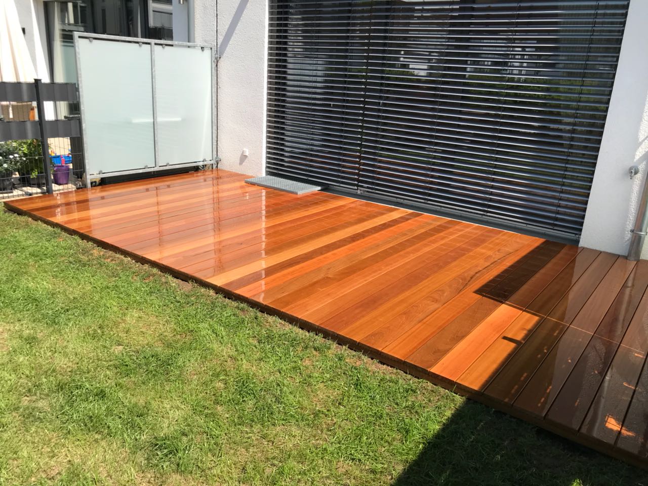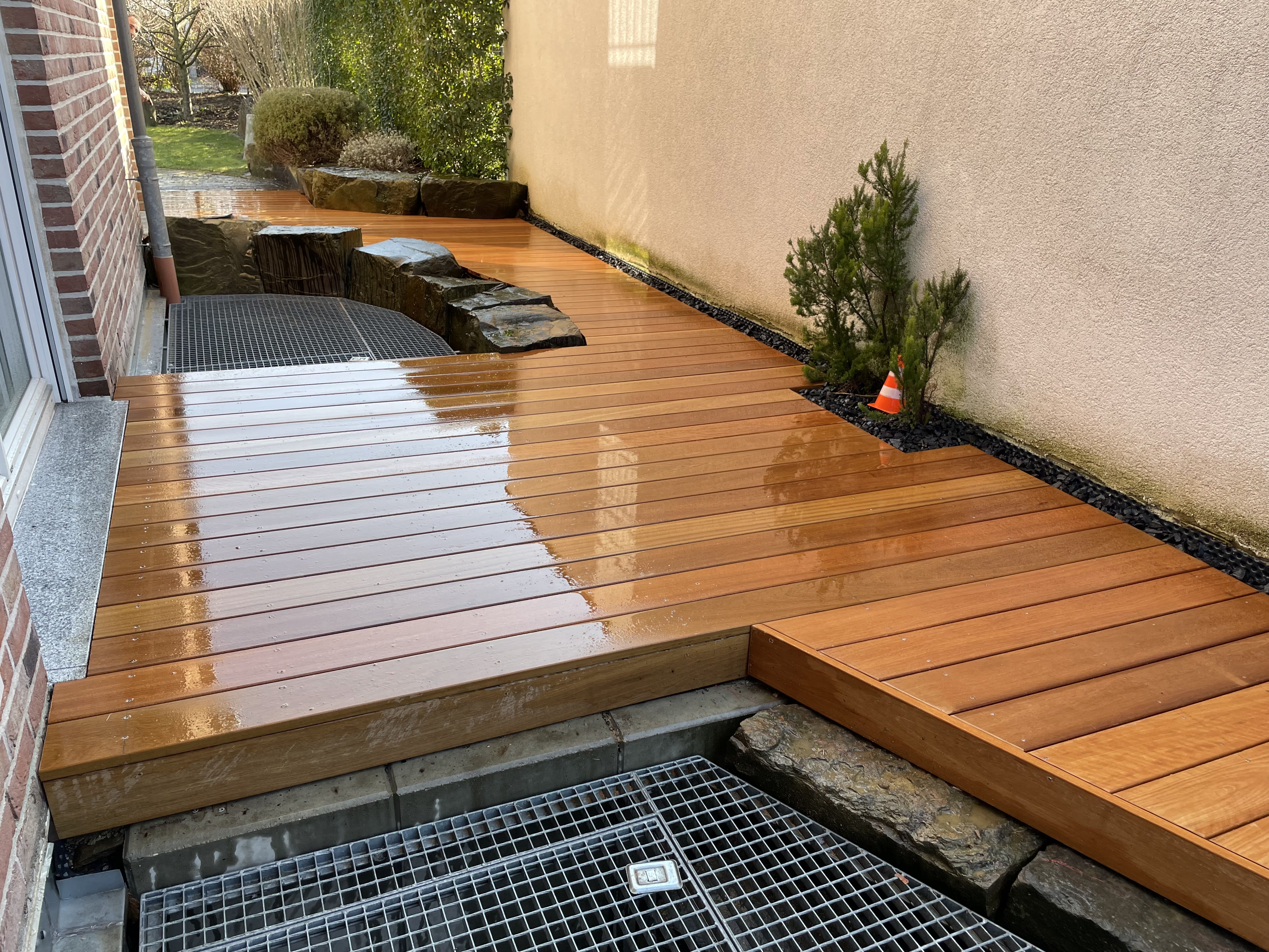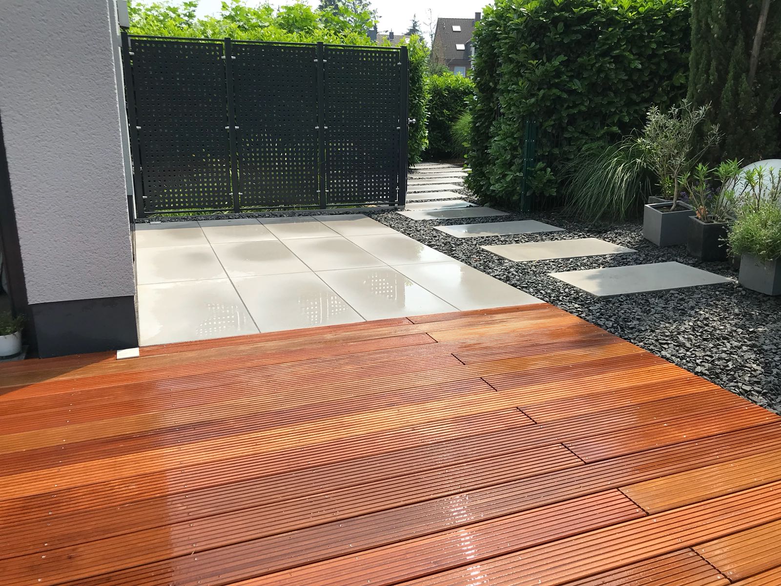 Nehmen Sie bei Interesse Kontakt mit uns auf. Wir planen den Terrassenbelag nach Ihren Wünschen oder unterbreiten Ihnen einige Vorschläge, falls Sie noch keine konkreten Vorstellungen haben. Am besten gelingt dies bei einer Besichtigung vor Ort, damit wir die baulichen Gegebenheiten und den Stil Ihres Gartens berücksichtigen können. In Hürth und der näheren Umgebung vergeben wir kurzfristig Termine für eine erste unverbindliche Beratung. Sagt Ihnen unser Angebot zu, überlassen Sie den Rest der Arbeit einfach uns. Wir bestellen das Holz und alle anderen Materialien und vereinbaren für die Montage einen Termin, auf den Sie sich verlassen können. Eine kleine Terrasse stellen wir meist innerhalb eines Tages fertig, sodass sie schon am Abend wieder genutzt werden kann.