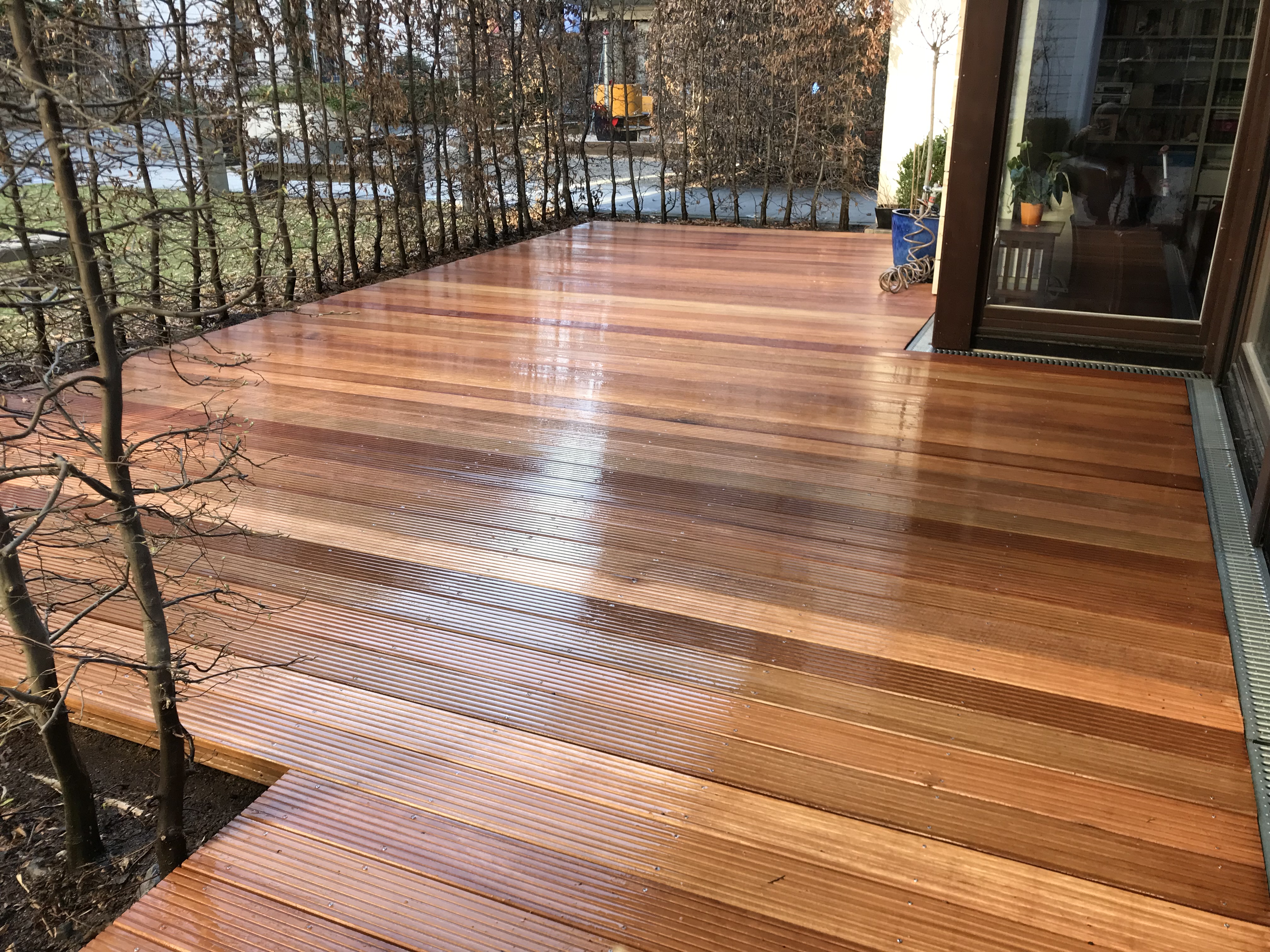Wenn Sie auf Ihrer Terrasse gern einen Holzfußboden hätten, beraten wir Sie gern bei der Auswahl der geeigneten Holzart. Vielleicht haben Sie Ihr Lieblingsholz aber auch schon gefunden und benötigen nur noch einen Fachmann, der den Boden für Sie verlegt. Bei der Verarbeitung von Holz sind grundlegende Kenntnisse der verschiedenen Holzarten wichtig, damit sich der Boden später nicht verzieht oder gar Risse bekommt. Darüber hinaus benötigen einige Hölzer einen Schutzanstrich, andere können dagegen auch naturbelassen verbaut werden. Wir haben bereits viel Erfahrung im Bau von Holzterrassen und wissen daher, worauf wir zu achten haben, damit Sie lange Freude an Ihrer Terrasse haben. Darüber hinaus geben wir Ihnen Tipps für die weitere Pflege und die richtige Reinigung Ihres neuen Fußbodens.